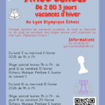 Durant les périodes de vacances scolaires, le Lyon Olympique Échecs (LOE) propose des stages aux enfants du lundi au mercredi (mais les familles déposent en général leurs enfants dès 8h30 et viennent