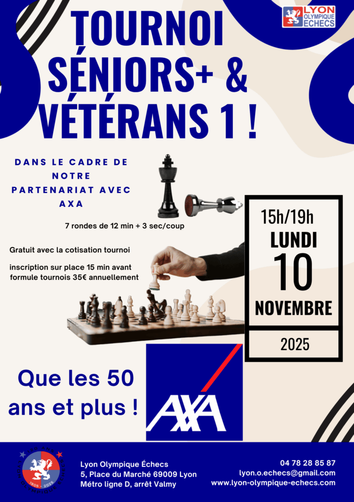 Les tournois toutes rondes sont ouverts à tous et réunissent des joueurs par niveau de classement elo similaire. Ce tournoi se déroulera du 7 au 9 novembre 2025 au Lyon Olympique Echecs, 5 Place du Marché 69009 Lyon.