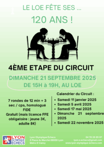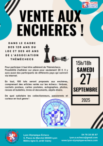 A l’occasion des 40 ans de Thèméchecs et des 120 ans du Lyon Olympique Echecs du jeudi 25, vendredi 26, samedi 27 et dimanche 28 septembre 2025, présence de Jean-Claude LETZELTER