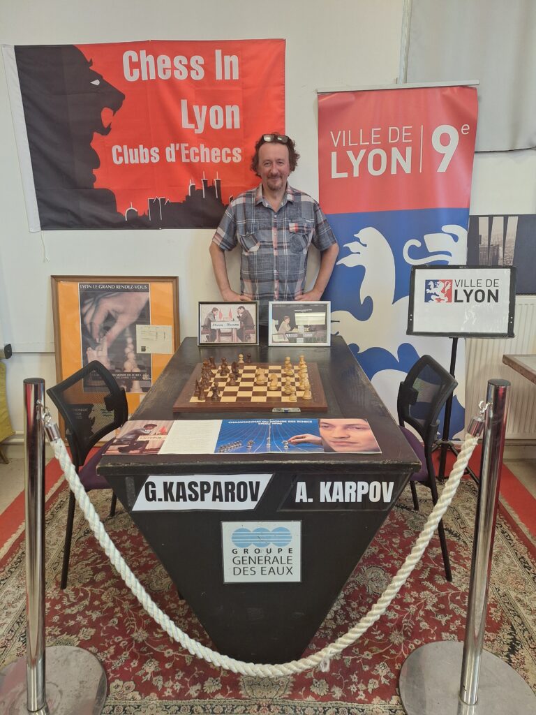 Christophe Leroy : Je suis Christophe LEROY, 57 ans, environ 2 000 Elo, membre du LOE depuis 1984/1985, arrivé à l’Échiquier Lyonnais (futur LOE) en septembre 1984. Du haut de mes 16 ans et demi, c’était l’époque des grosses confrontations KARPOV-KASPAROV qui ont commencé à Moscou et qui se sont finies, avec bonheur, à Lyon en novembre-décembre 1990 !