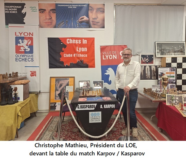 JOL : Je me suis rendu au LOE il y a quelques années, et il existait à l’époque une salle contenant des objets historiques liés aux échecs. En particulier la table du match KASPAROV/KARPOV à Lyon en 1990. Peux-tu nous parler de cette exposition permanente que vous avez créée ?