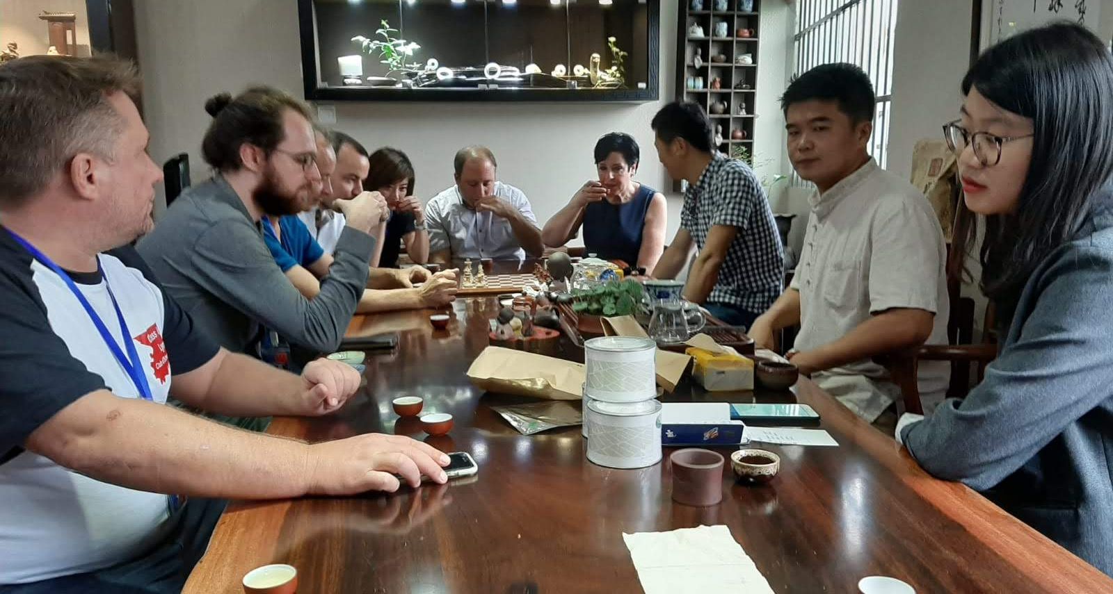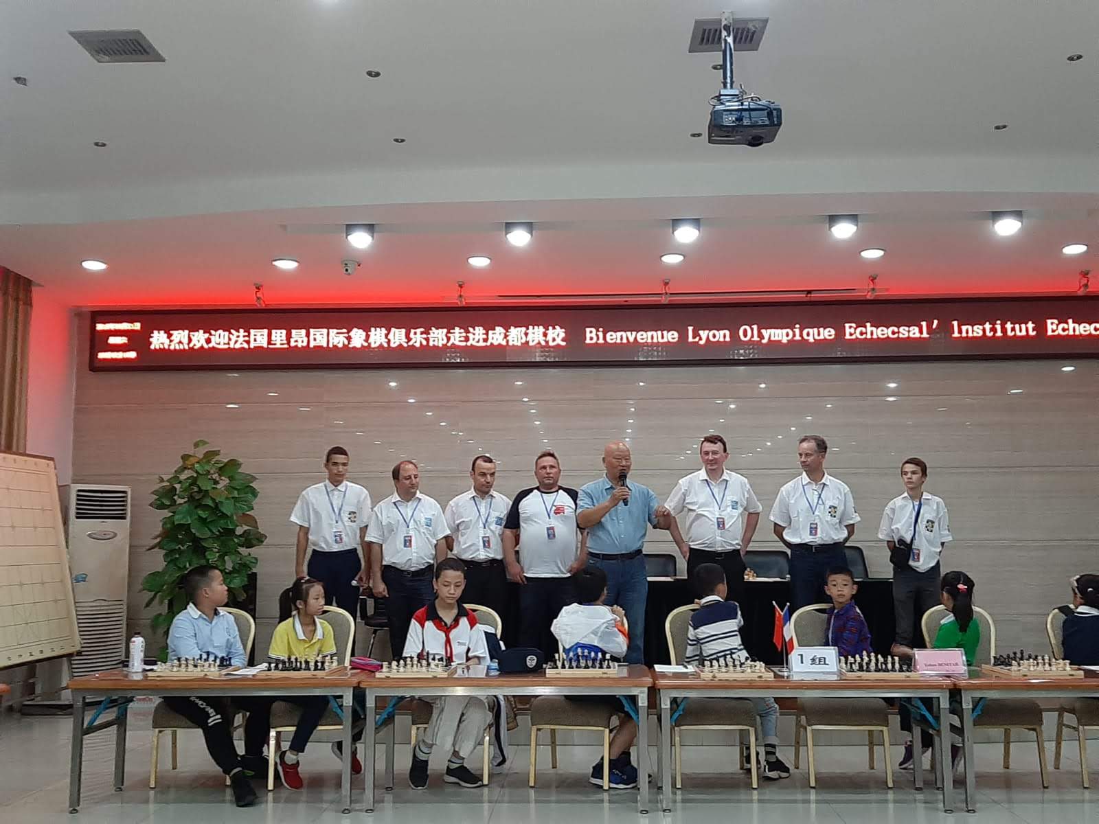 Après la fin du déjeuner, direction le vieux Chengdu où nous avons flâné durant 2h à 3h avant de dîner à l’Institut des Échecs. À 20h nous voici rendus dans la dernière et 2ème école programmée pour notre séjour Chengdounais. Une bonne centaine de scolaires, malgré l’heure tardive, nous attendaient de pied ferme ! Les photos parlent d’elles-mêmes et montrent de nouveau une ambiance extraordinaire ! Quelques nulles lâchées ici et là mais sans défaite cette fois-ci.