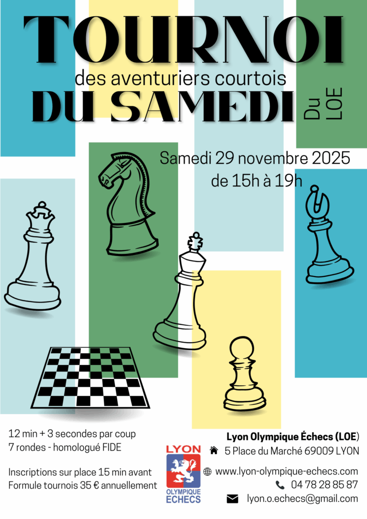 A l’occasion des 120 ans du Lyon Olympique échecs, 5 tournois rapides ont été organisé tout au long de l’année.