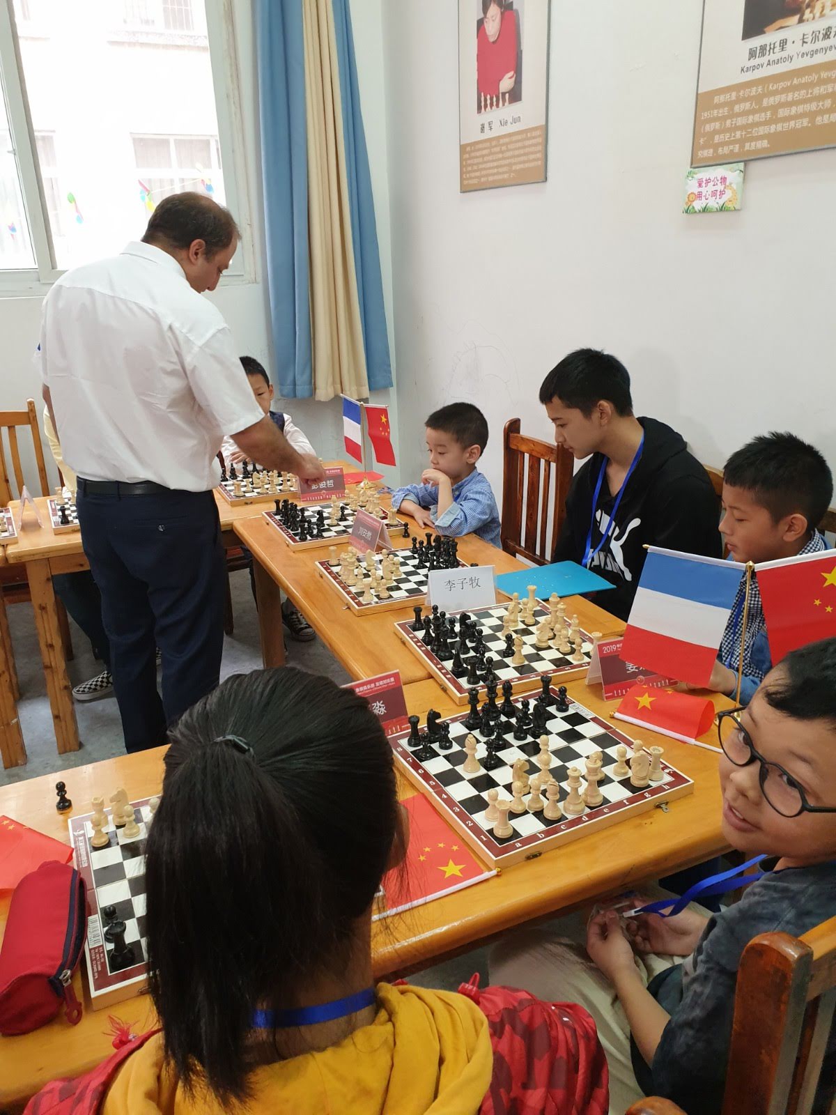 Le Maitre International Yohan BENITAH affrontant en simultanée les enfants de l’école de Chengdu