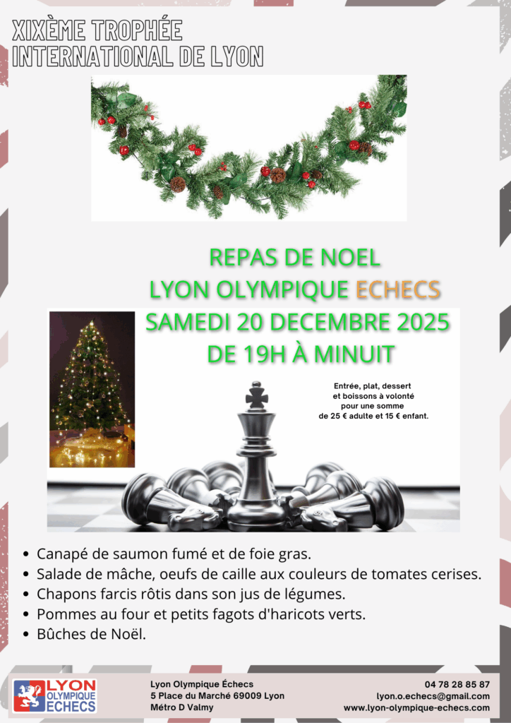 Les fêtes approchent à grands pas, et le Lyon Olympique Échecs vous invite à célébrer cette période conviviale et chaleureuse autour de deux événements incontournables !