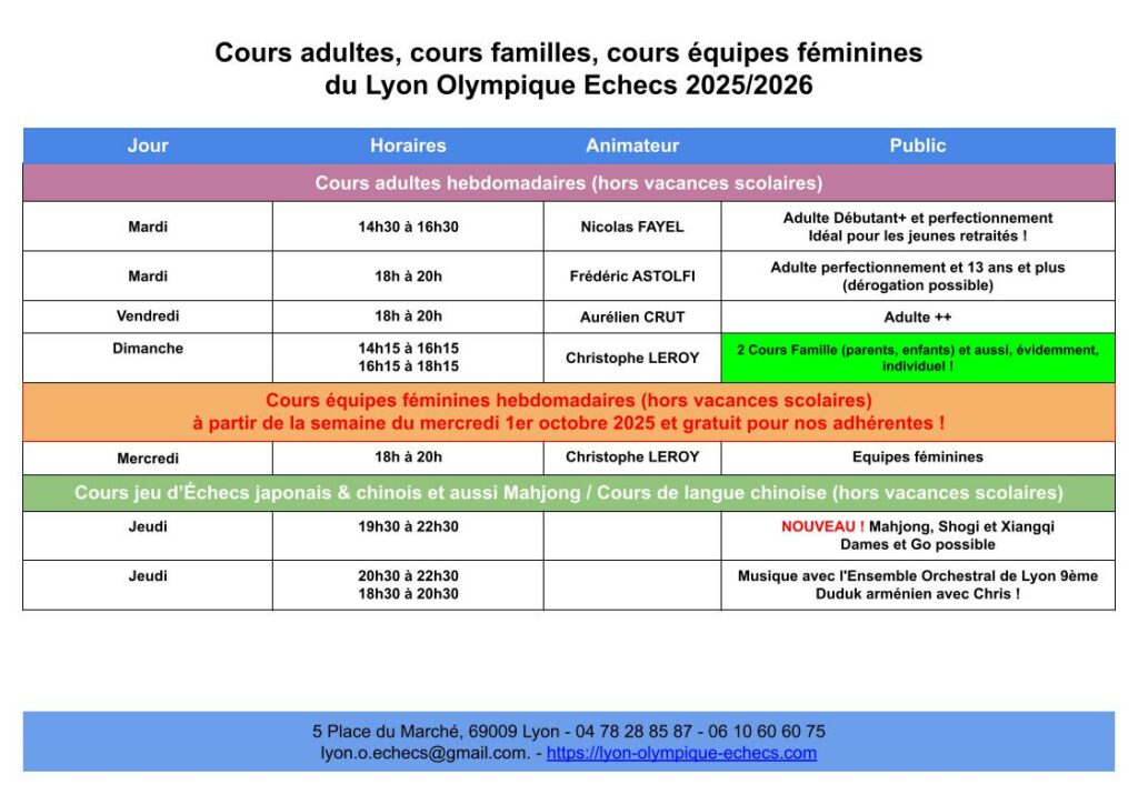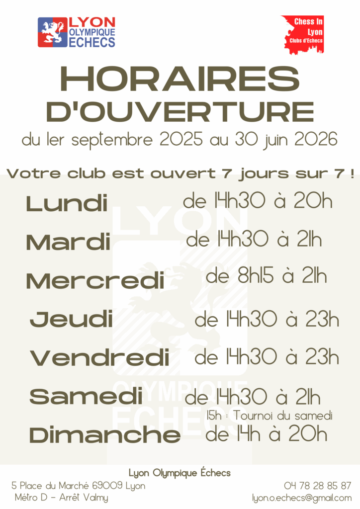Tél. 04 78 28 85 87 – Courriel : lyon.o.echecs@gmail.com