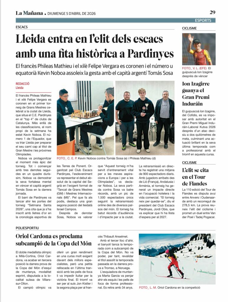 La presse espagnole a également écrit un article sur cette belle performance ! Félicitations majuscules pour Philéas et nous espérons que ses prochains tournois seront impressionnants !