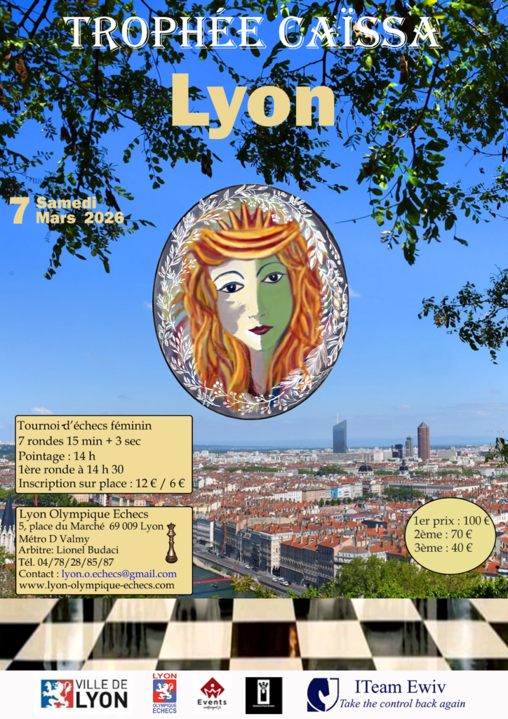 l’organisation à l’Echecs Club de Villeurbanne, le samedi 7 février 2026 de 13h45 à 18h d’une phase du Trophée Caissa.