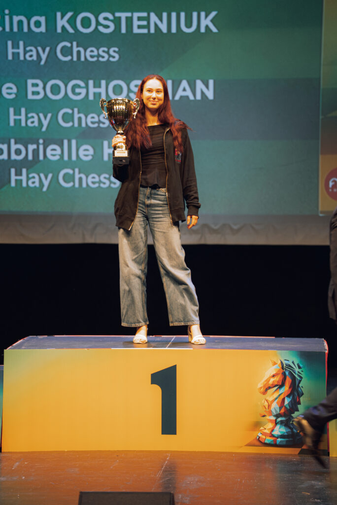 Notre vice-championne de région Abigail CHAPPAT réalise un très bon début de tournoi avec 3,5 points en 5 matchs. Sa performance en ronde 1 contre une joueuse classée à plus de 1600 ELO nous a grandement impressionnés. Malheureusement la concurrence a été rude sur les derniers matchs où elle a réussi encore à accrocher 1 point. Elle termine finalement 44ᵉ avec 4,5 points également. Une belle expérience pour elle qui lui promet plein de réussite dans la suite de sa carrière échiquéenne.