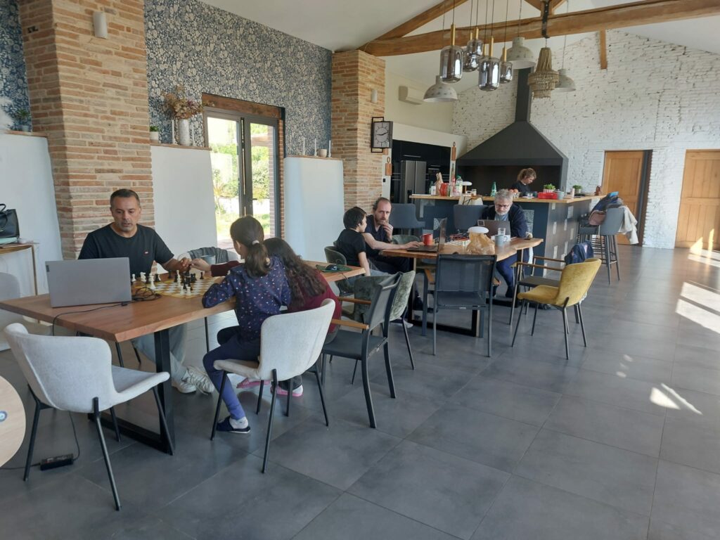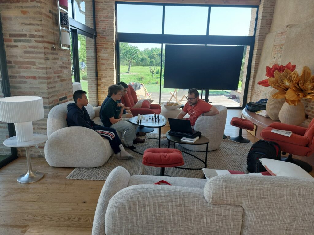 Si certains jeunes se sont déplacés en famille, le club a organisé un séjour groupé qui a réuni une vingtaine de personnes ! Nos jeunes ont ainsi pu profiter d’un gîte exceptionnel avec un programme sérieux composé d’analyses de partie et de préparations d’ouverture, mais également de détente avec les nombreuses activités : piscine, football, billard et babyfoot, barbecue et autres jeux de société !