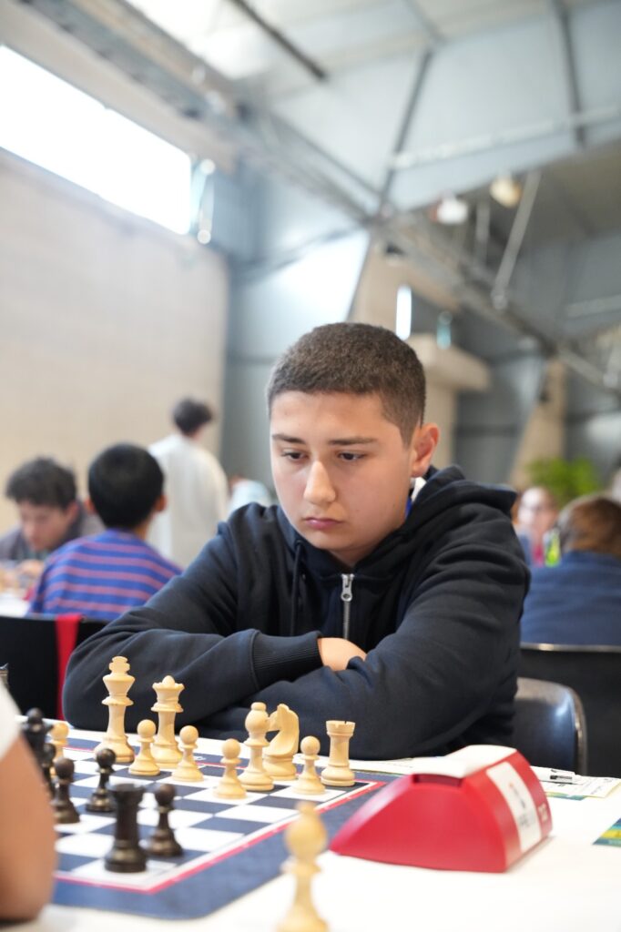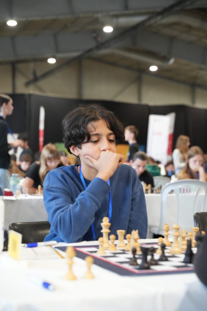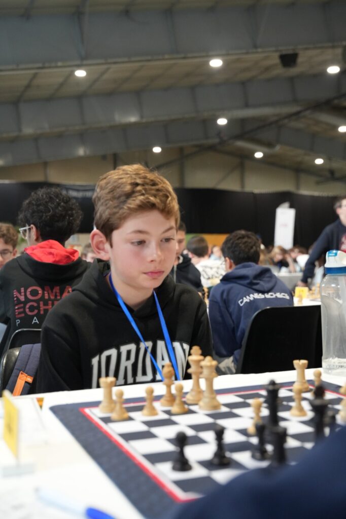 Pas de titre cette année pour Tristan BREUIL : le champion des U16 2024 a commencé 2ᵉ elo d’un tournoi très ouvert avec de nombreux joueurs autour des 2200-2300 elo. Malheureusement, il n’a pas réussi à se démarquer et finit finalement 25ᵉ avec 6 points, mais il est sûr que son niveau de jeu aurait pu lui permettre de prétendre au Titre.