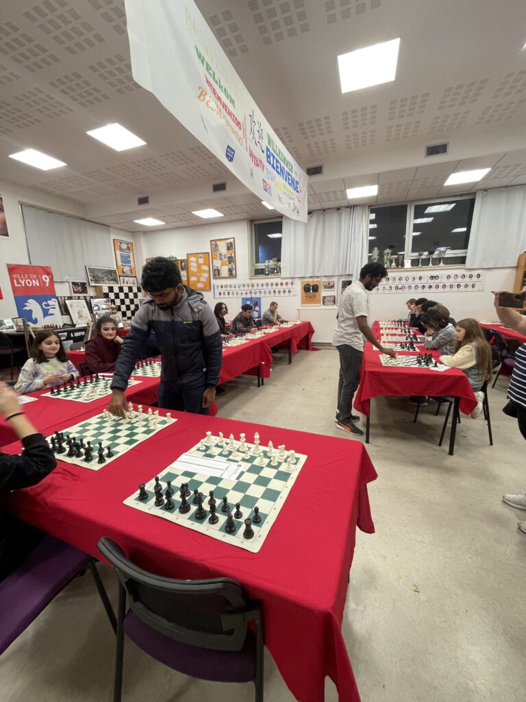 Ce lundi, les trois joueurs sont revenus au club pour disputer plusieurs parties amicales. Ils ont d’abord affronté les joueurs du club en 10 minutes KO, se montrant impitoyables et ne lâchant même pas un demi-point ! Ensuite, une simultanée a débuté à 18h, durant laquelle les trois Maîtres ont joué 18 adversaires en même temps. Là encore, ils n’ont accordé aucune nulle (heureusement que nous avions un joueur fantôme à plus de 2100 Elo, Younès, que nous avons forcé à jouer pour avoir une chance de dépasser le 0, absolu ! Il a réussi : 1 point !).