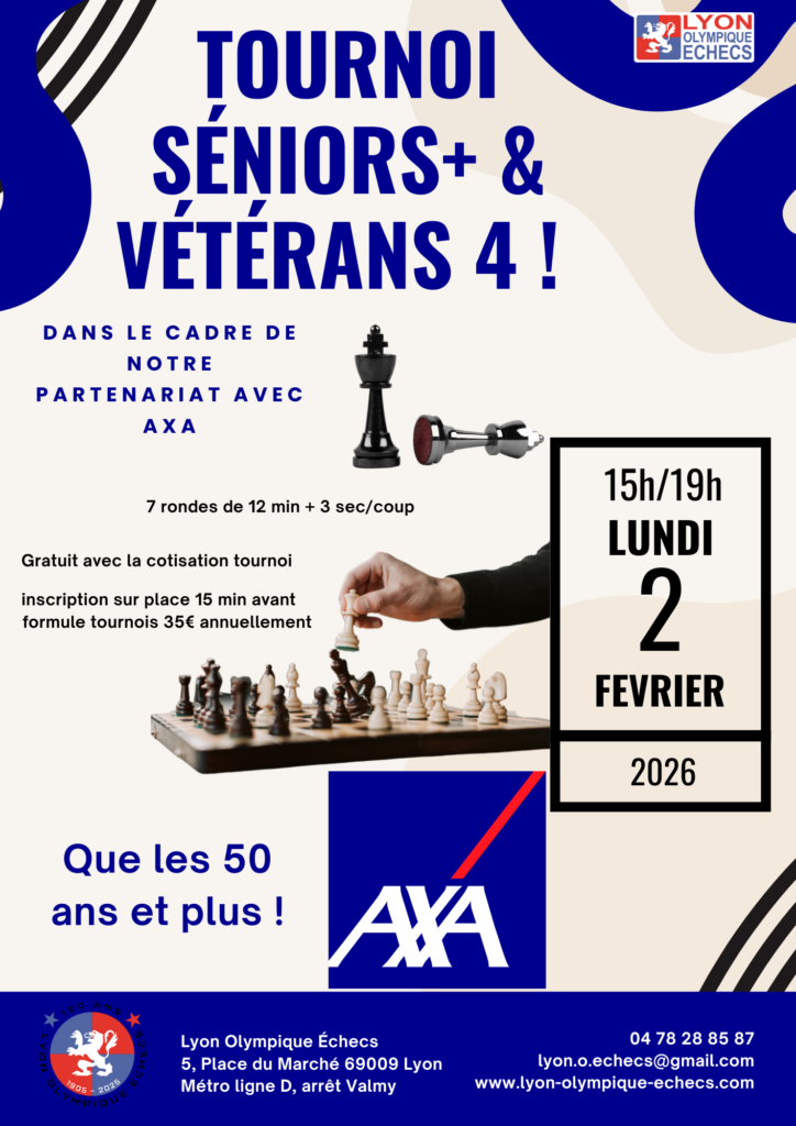 Mais avant le lundi 2 février 2026, de 15h à 19h, nous organiserons la quatrième édition du tournoi Séniors + et Vétérans, réservé aux personnes de plus de 50 ans !