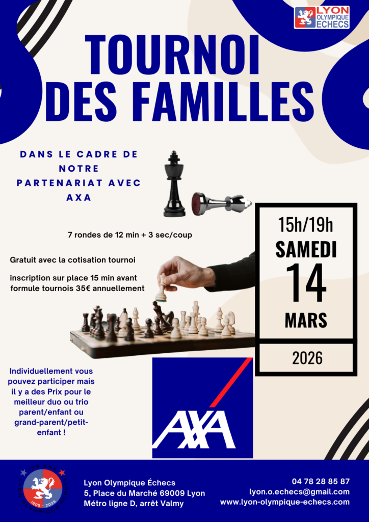 Le tournoi des familles est ouvert à tous et se déroulera dans nos locaux le samedi 14 mars 2026, de 15h à 19h.