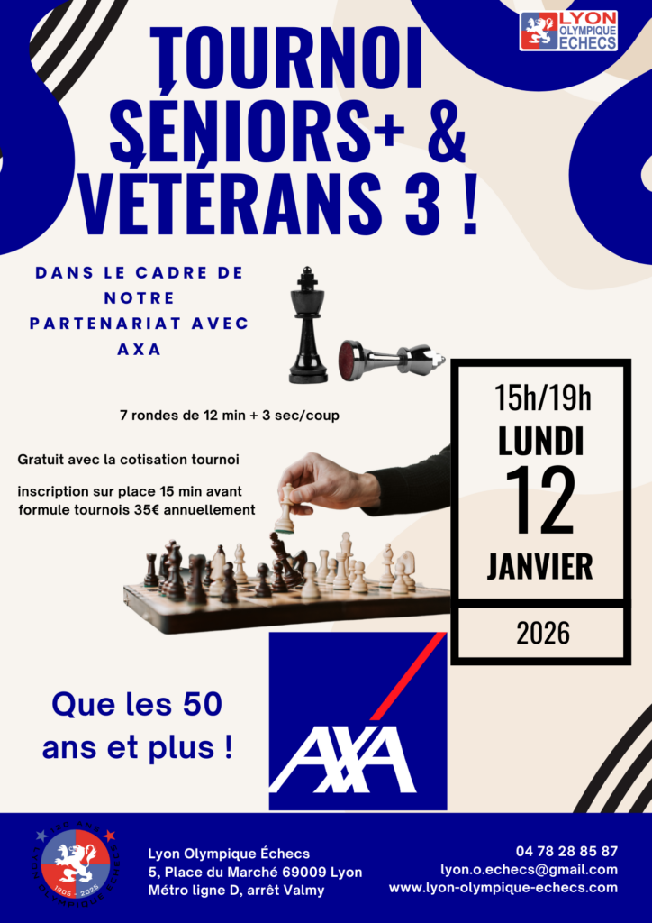 Ensuite, le lundi 12 janvier 2026 de 15h à 19h, on organise le troisième édition du tournoi séniors + et vétérans, réservé aux personnes de plus de 50 ans !